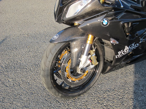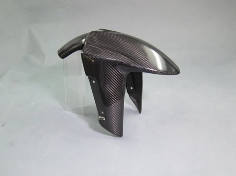 フロントフェンダー SPL(写真はドライカーボン) エーテックのオリジナル形状。 空力特性の向上と、Fフォークの保護性能を向上させ、同時にスタイリッシュな外観となっています。